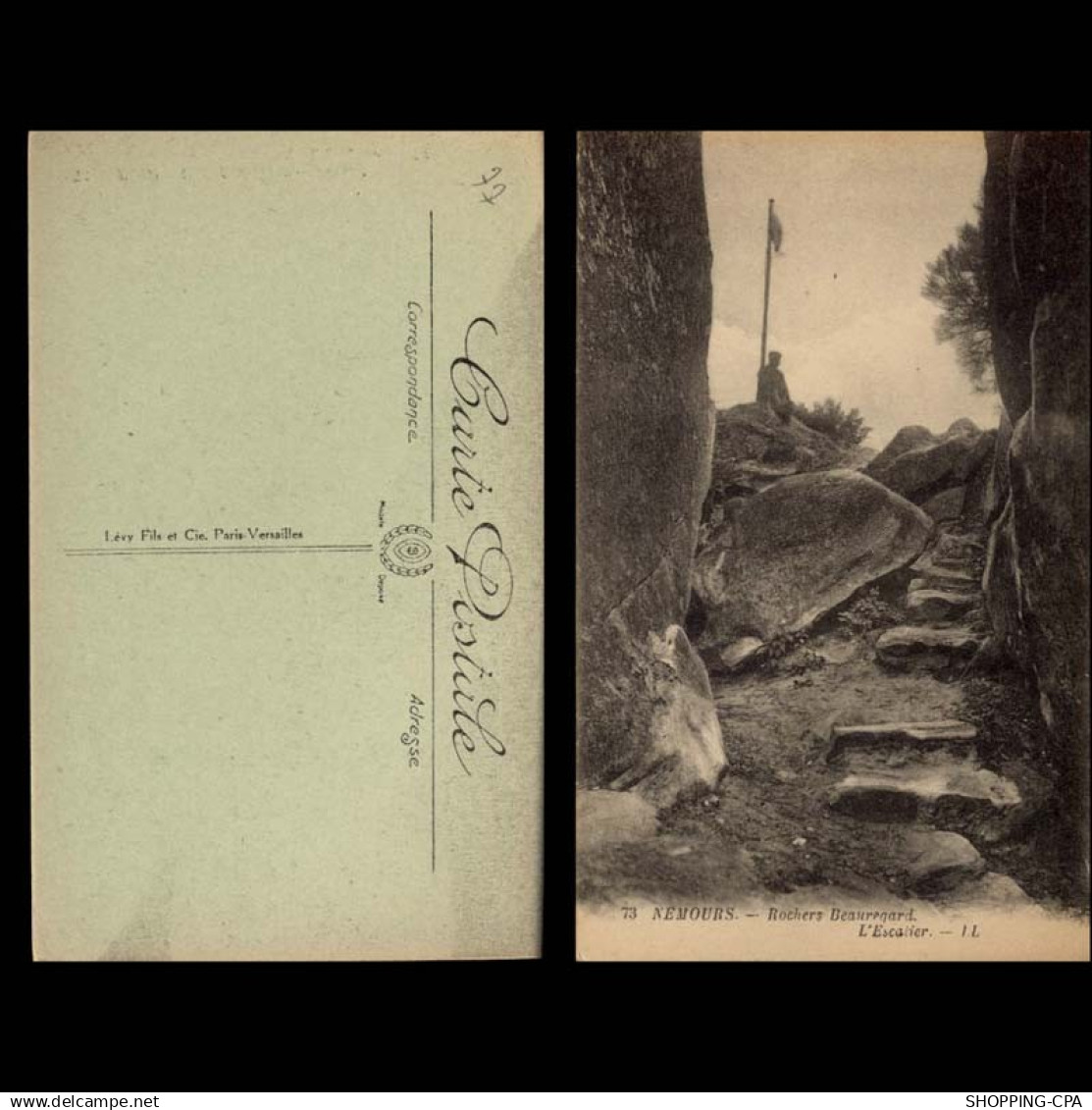 Kaufen Sie diese alte Postkarte "77 - Nemours - Rocher Beauregard - L'escalier" auf Delcampe