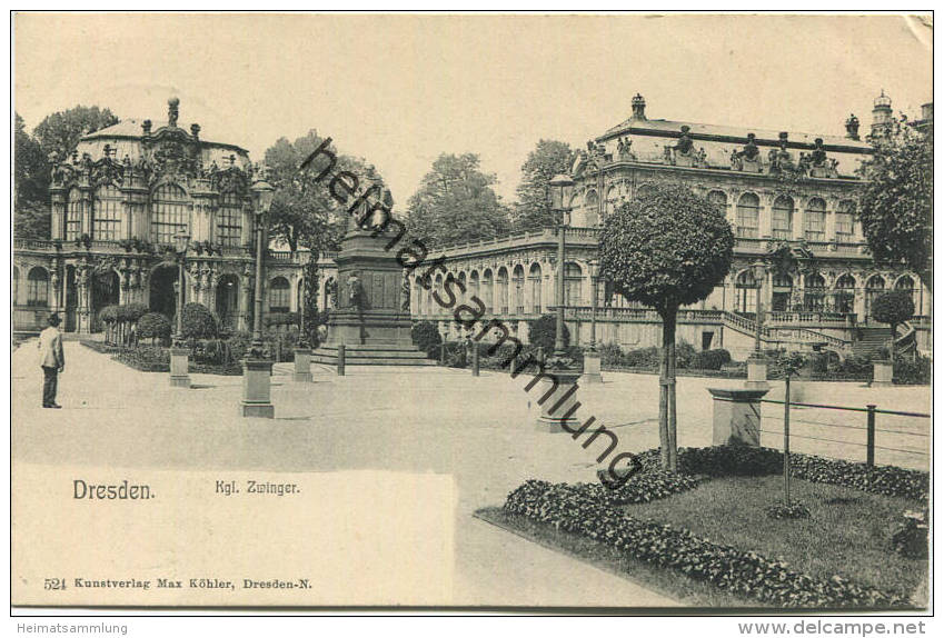 Buy this old postcard "Dresden - Zwinger - Verlag Max Köhler Dresden - Bahnpost Dresden Tetschen Zug 452 gel. 1906" on Delcampe
