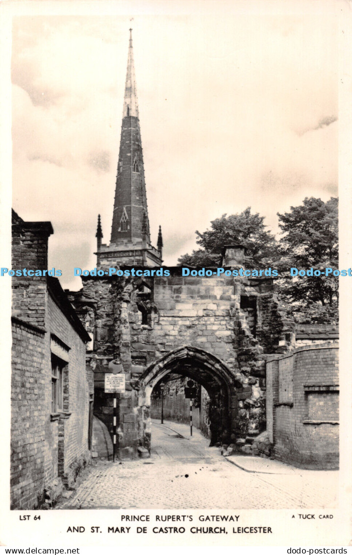 Buy this old postcard "R360108 Leicester Prince Rupert Gateway and St Mary de Castro Church Tuck RP" on Delcampe